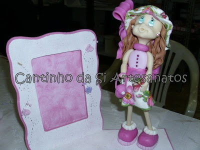 Porta Retrato em mdf, e boneca magrela em biscuit com decoupage, dei o nome de Dandara porque ela se parece com a minha sobrinha. Obrigado profª Michele pelas aulinhas...